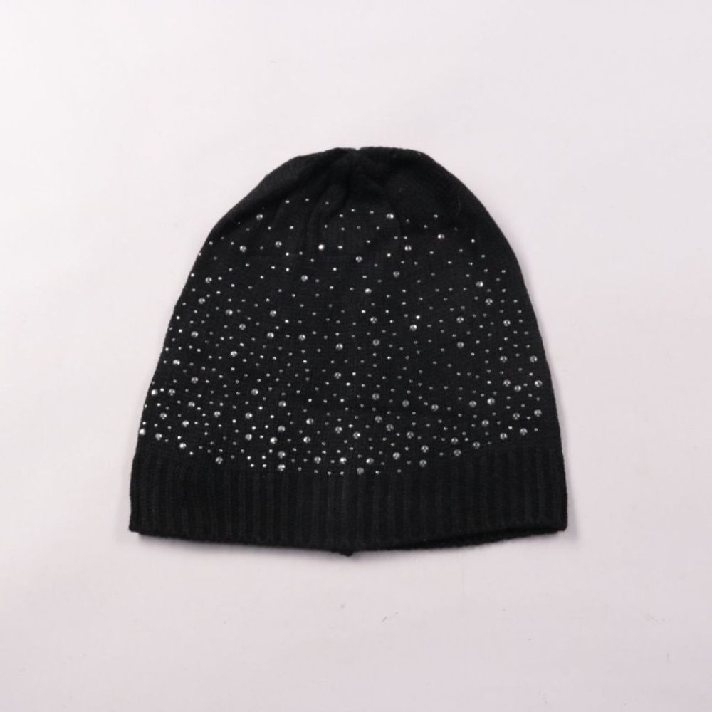 Вязаная шапка House чёрного цвета со стразами и тёплой флисовой подкладкой. Подойдёт для зимних прогулок и повседневных городских образов. Размер one size, хорошо держит тепло и не продувается за счёт подкладки.