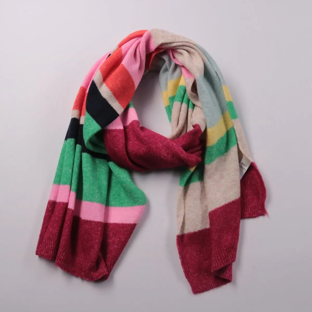 Шарф M&S в яркую полоску, мягкий и приятный к коже. Подойдёт для повседневных образов в прохладную погоду, можно носить под пальто или куртку. Практичный вариант: хорошо драпируется и добавляет цветовой акцент.