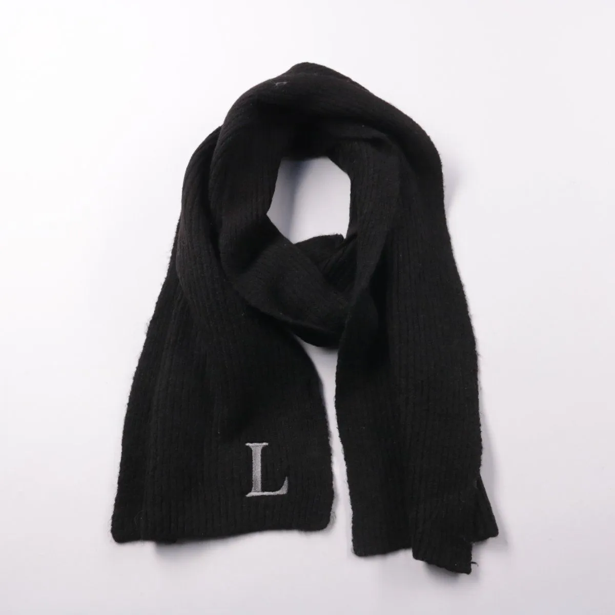Вязаный шарф Primark Cares чёрного цвета с вышитой буквой L. Подойдёт для повседневной носки в холодную погоду и легко сочетается с любой верхней одеждой. Мягкий и тёплый, удобно завязывается и закрывает шею от ветра.
