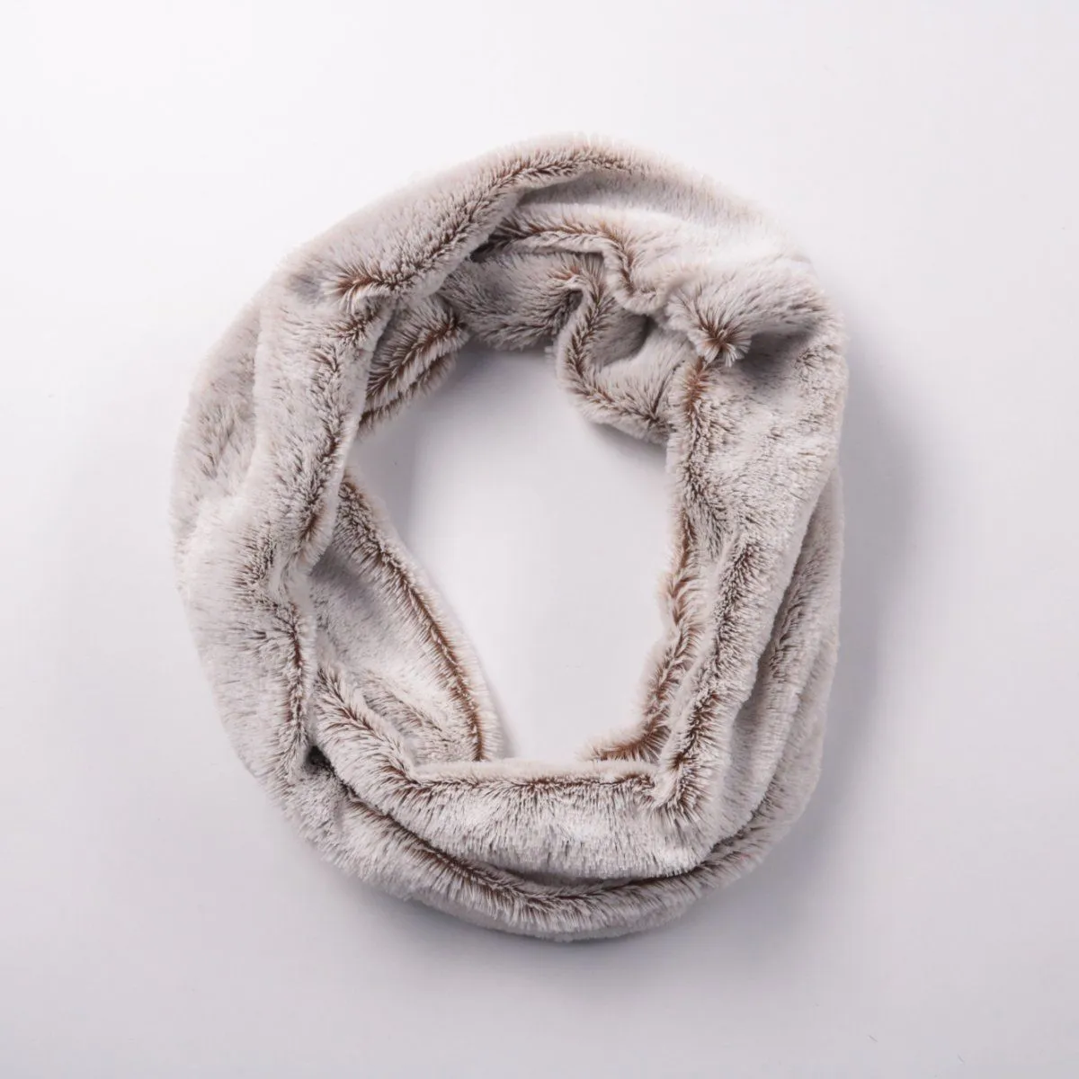 Мягкий меховой снуд светло-серого цвета, закрывает шею и хорошо держит тепло в холодную погоду. Подойдёт для зимних прогулок и поездок, легко сочетается с верхней одеждой. Удобен тем, что надевается одним движением и не развязывается.