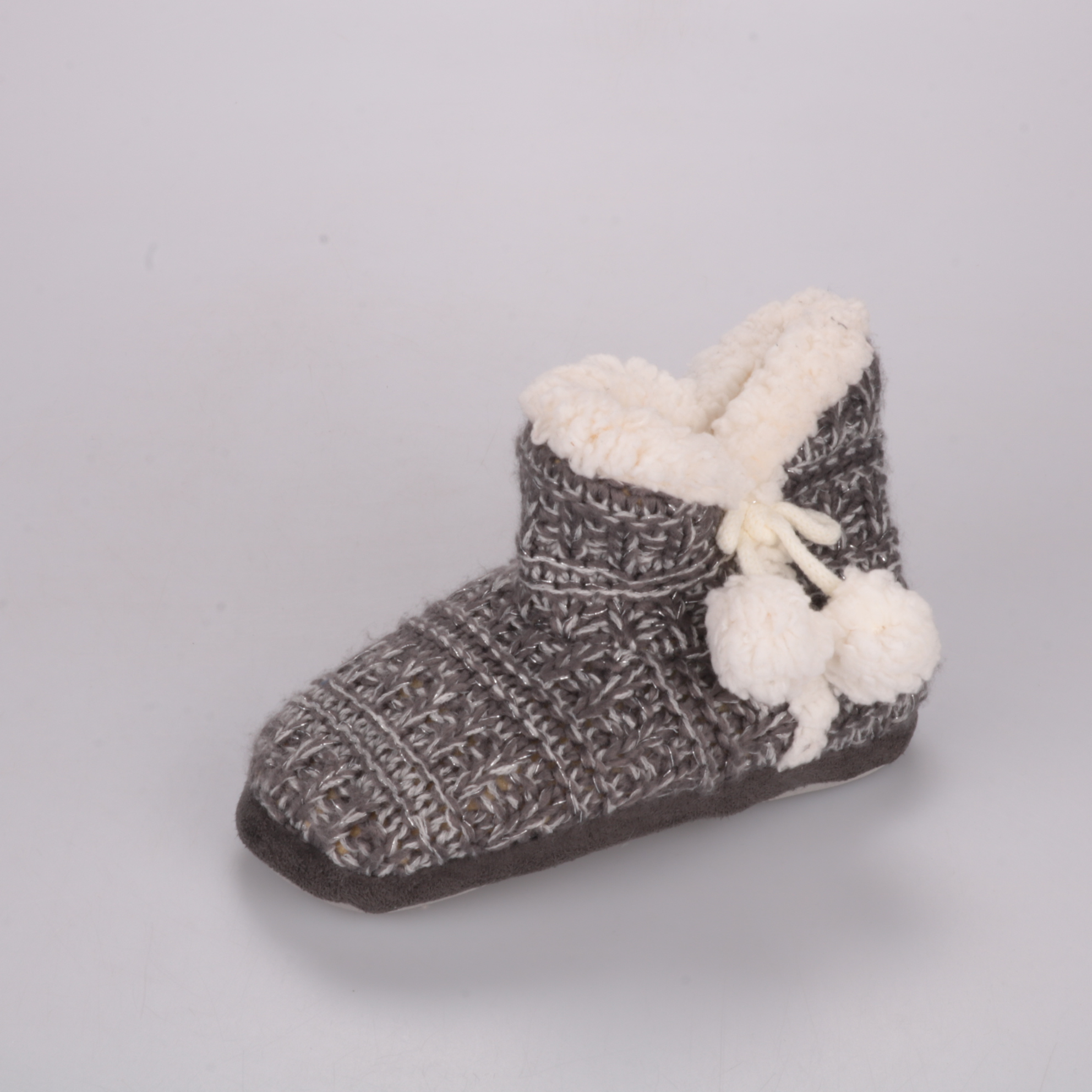 Домашние тапочки-угги с вязаным верхом и мягкой меховой подкладкой. Подойдут для дома и дачи в холодное время, хорошо сохраняют тепло. Нескользящая подошва удобна для ежедневной носки.