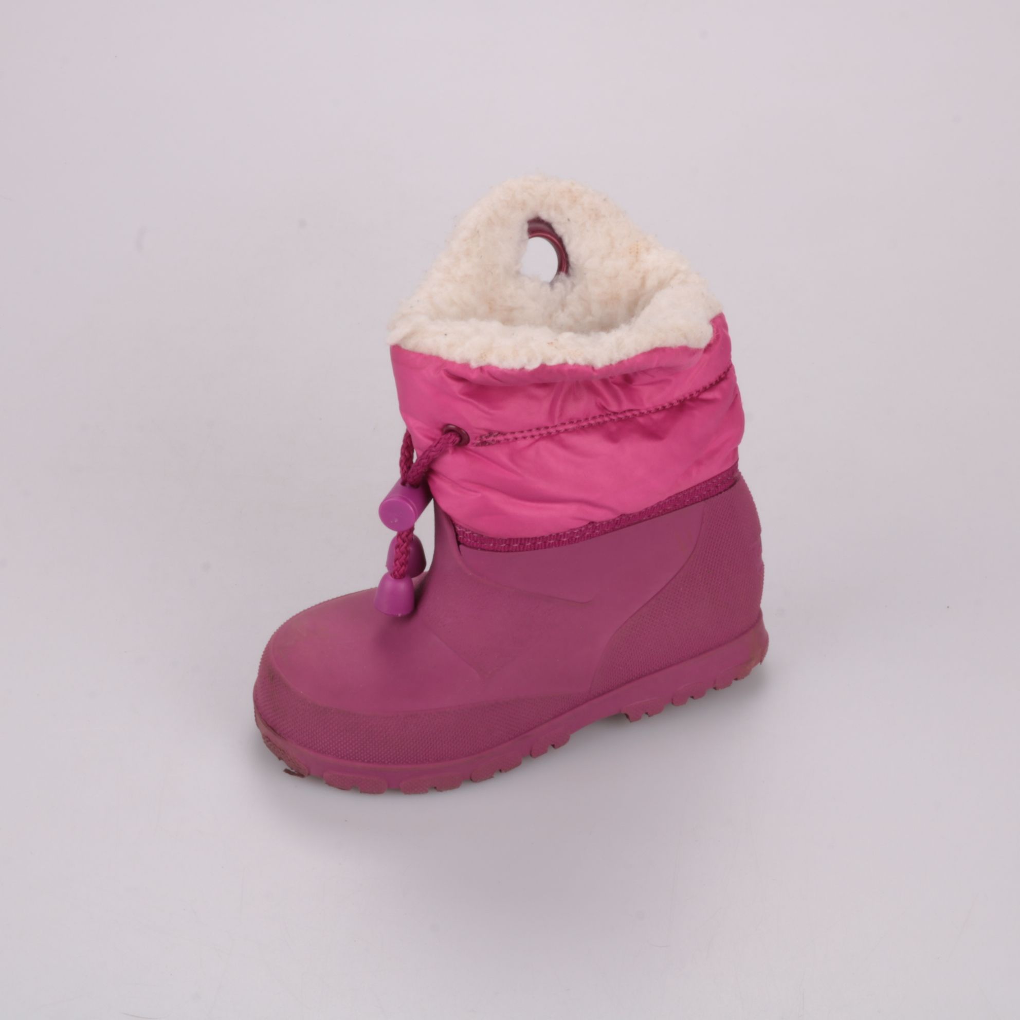 Детские сноубутсы для девочки в розово-бордовом цвете с тёплой меховой подкладкой и утяжкой на голенище. Подойдут для зимних прогулок и игр на снегу, хорошо держатся на ноге и защищают от холода. Практичная нескользящая подошва с выраженным протектором...