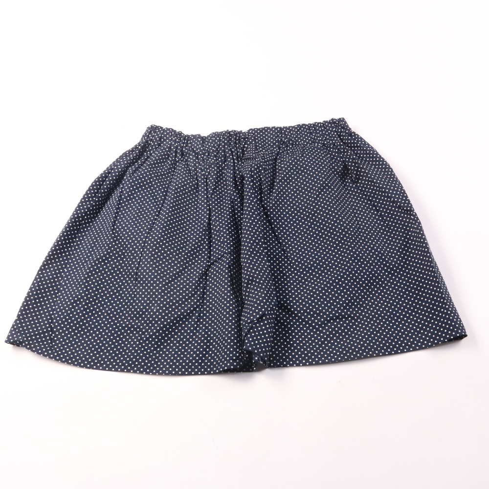 Юбка для девочки тёмно-синего цвета в мелкий горошек, с эластичным поясом. Подойдёт для прогулок и повседневной носки в тёплую погоду. Пояс на резинке удобно садится по талии и не сковывает движения.