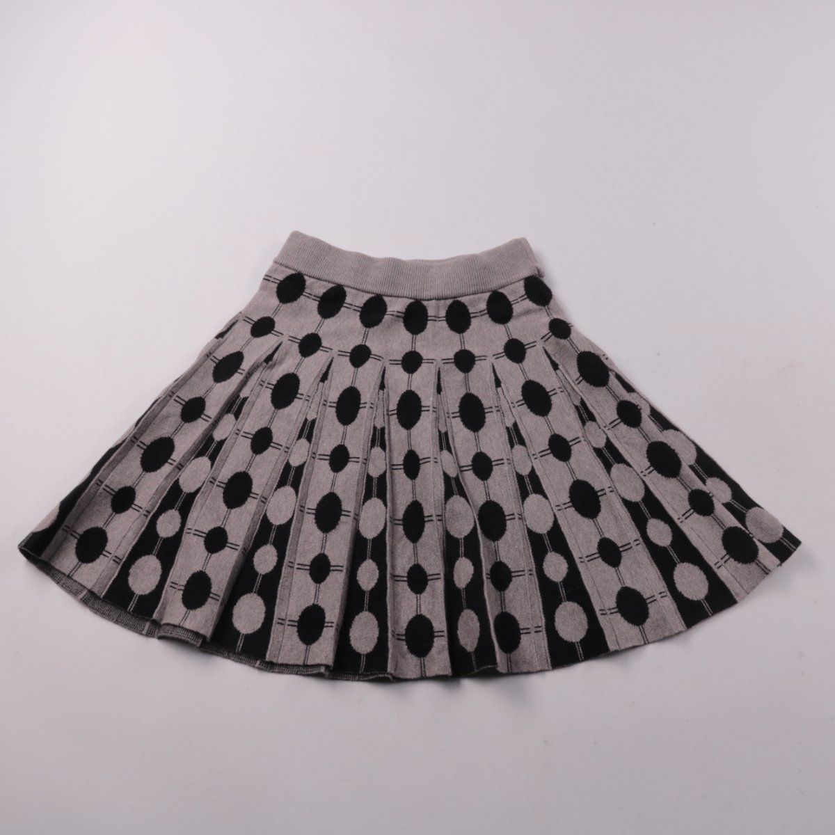 Вязаная юбка для девочки с плиссировкой и эластичным поясом-резинкой. Серо-чёрная расцветка в крупный горох подойдёт для школы и повседневных прогулок. Пояс хорошо тянется и комфортно садится по талии.