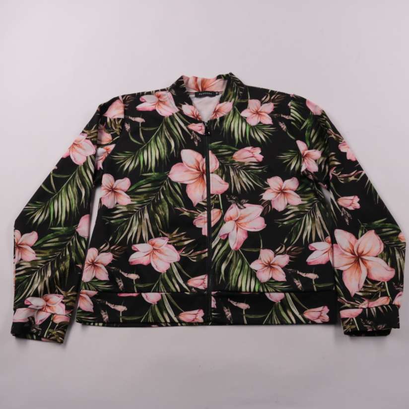 Ветровка Pescara с ярким цветочным принтом на тёмном фоне и застёжкой на молнию. Подойдёт для тёплой погоды и прохладных летних вечеров, а также на прогулки. Лёгкий материал быстро сохнет и удобен в уходе.