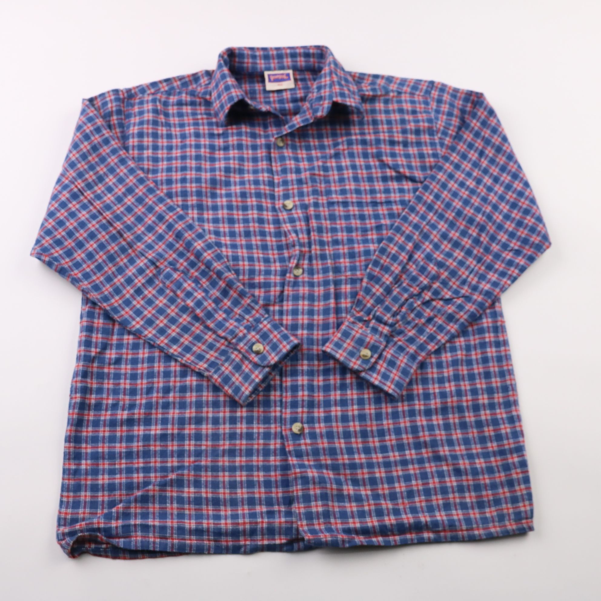 Рубашка Johnny Air в сине-красную клетку, размер 152. Подойдёт для школы и повседневной носки в прохладную погоду, хорошо смотрится с джинсами или брюками. Практична за счёт длинного рукава и застёжки на пуговицы — удобно быстро переодеваться.