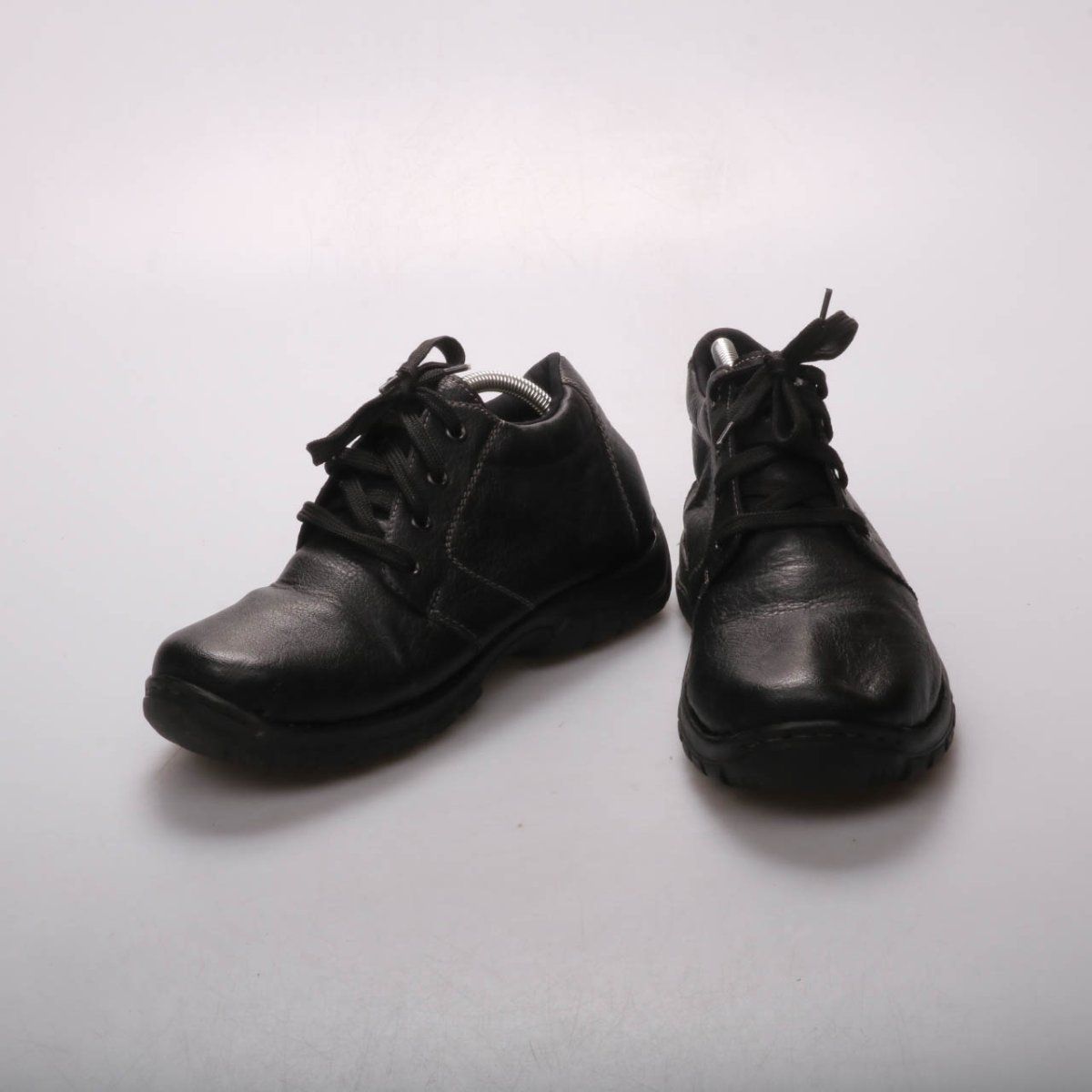 Мужские кожаные ботинки Rieker чёрного цвета на шнуровке, с низким голенищем и плотной подошвой. Подойдут для повседневной носки в городе в прохладную погоду. Практичное преимущество — износостойкая подошва с выраженным протектором для более уверенного сцепления.