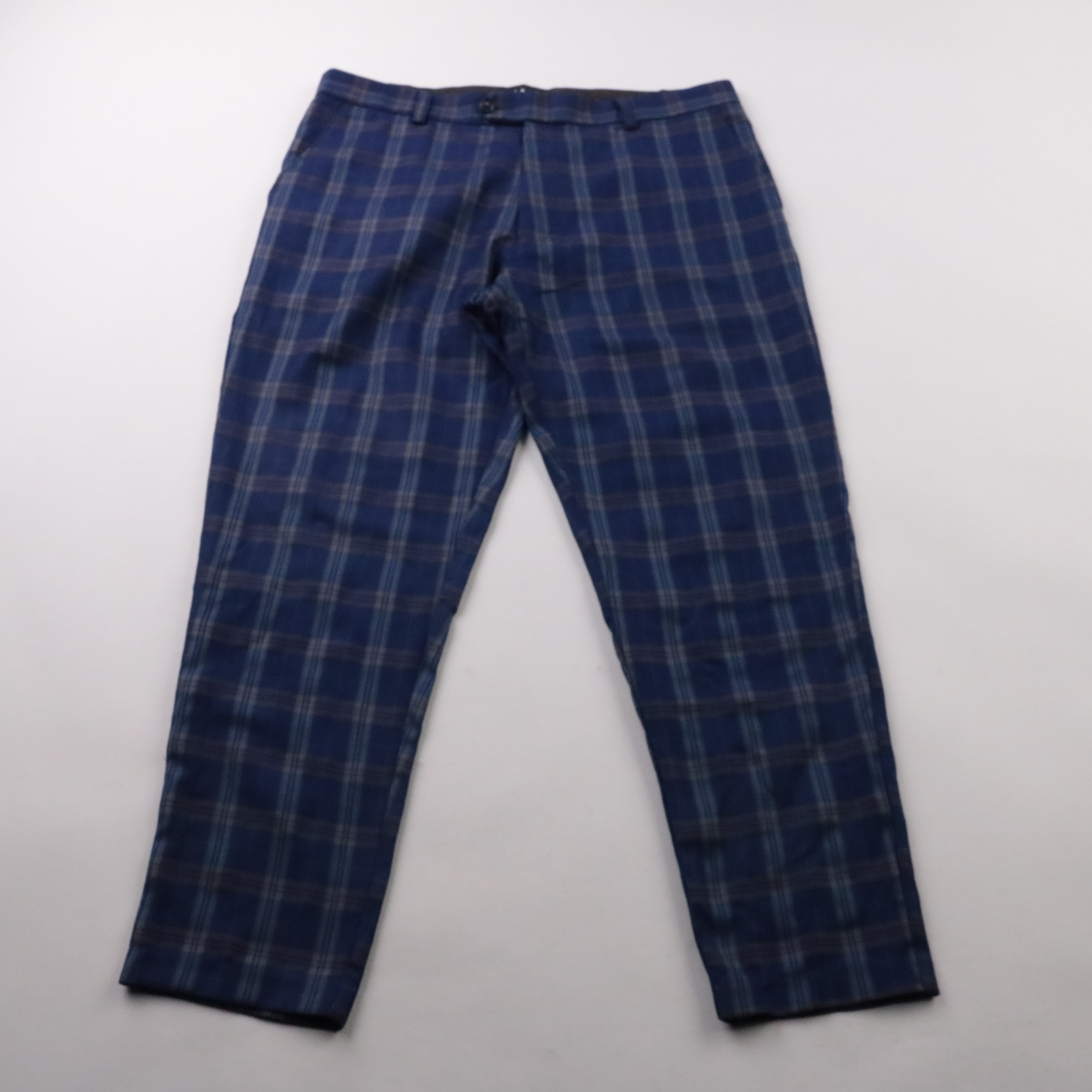 Мужские брюки BoohooMAN в синюю клетку, аккуратный классический крой со стрелками. Подойдут для офиса и повседневных образов с рубашкой или джемпером в демисезон и круглый год. Практичный плюс — плотная костюмная ткань с добавлением полиэстера хорошо д...