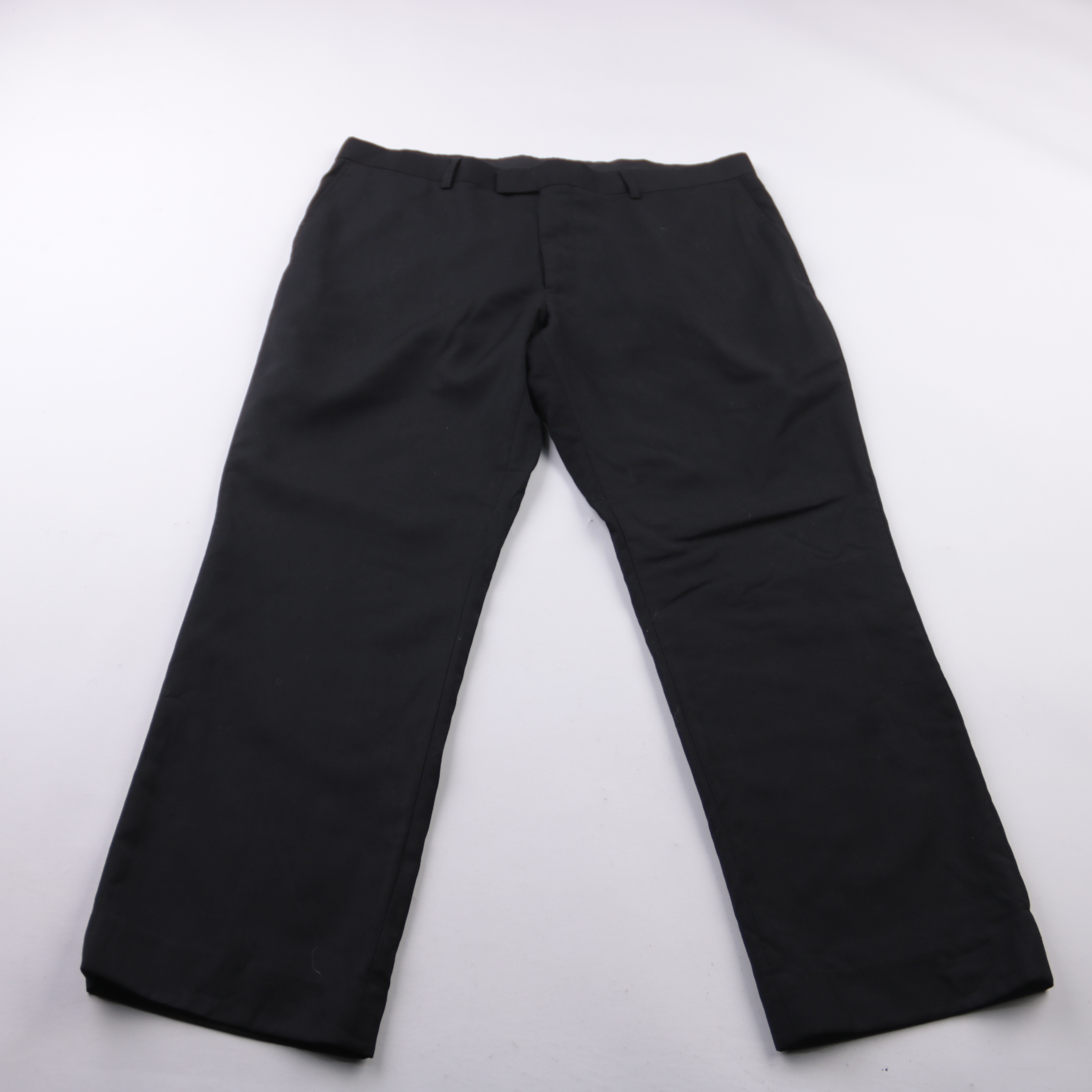 Мужские классические брюки чёрного цвета, лаконичный крой без лишних деталей. Подойдут для офиса, деловых встреч и торжественных случаев, легко сочетаются с рубашкой и пиджаком. Практичная смесовая ткань меньше мнётся и проста в уходе.