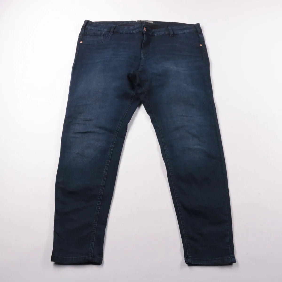 Мужские джинсы Clockhouse в темно-синем цвете, модель regular с зауженной штаниной (jogging leg). Подойдут для повседневной носки и офисного casual, хорошо сочетаются с кроссовками и ботинками. Практичны в уходе и за счёт эластана комфортны в движении.