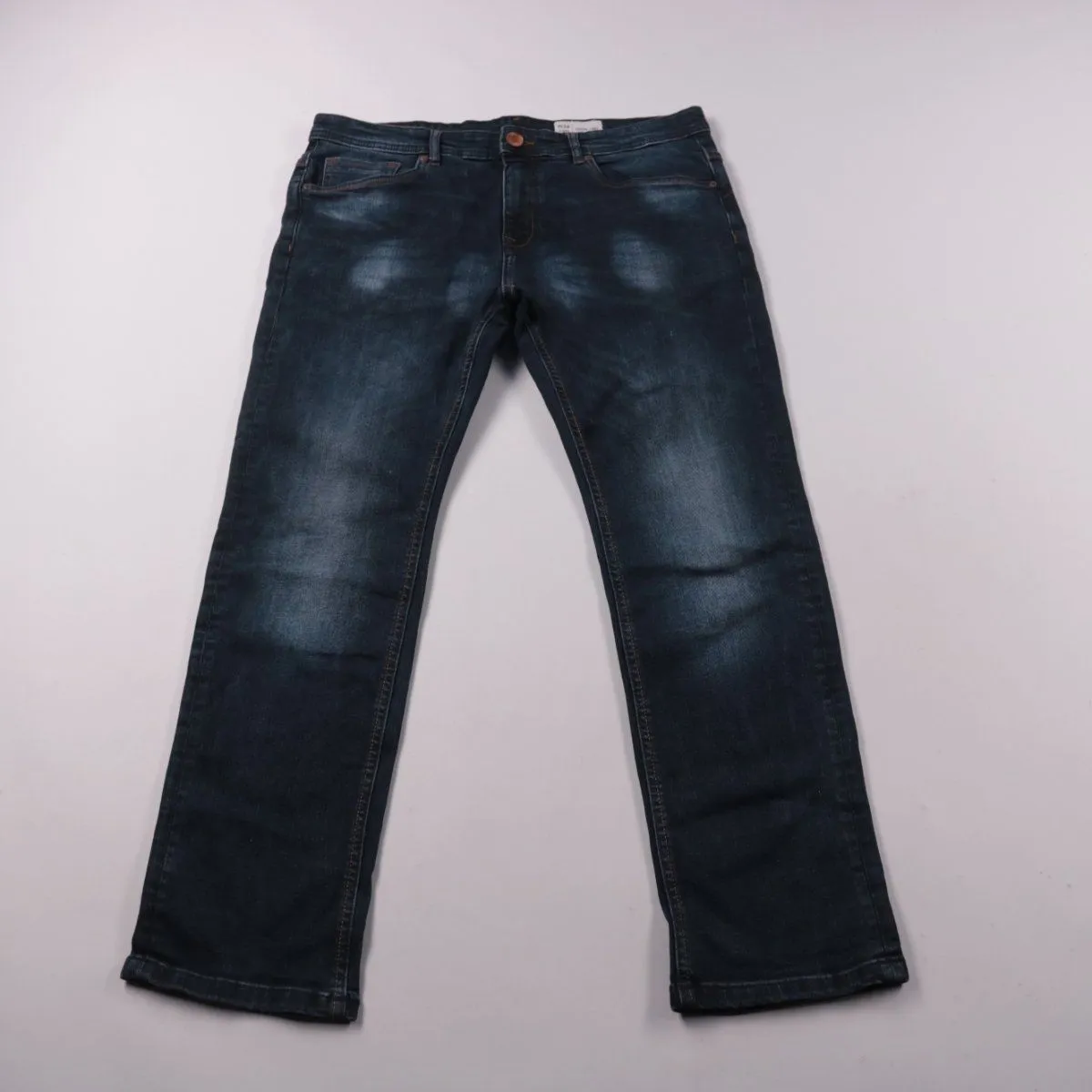 Мужские джинсы из тёмно-синего денима с лёгким эффектом потёртости. Подойдут для повседневной носки и сочетаний с футболками, рубашками и кедами. Плотная ткань и классические карманы делают модель практичной на каждый день.