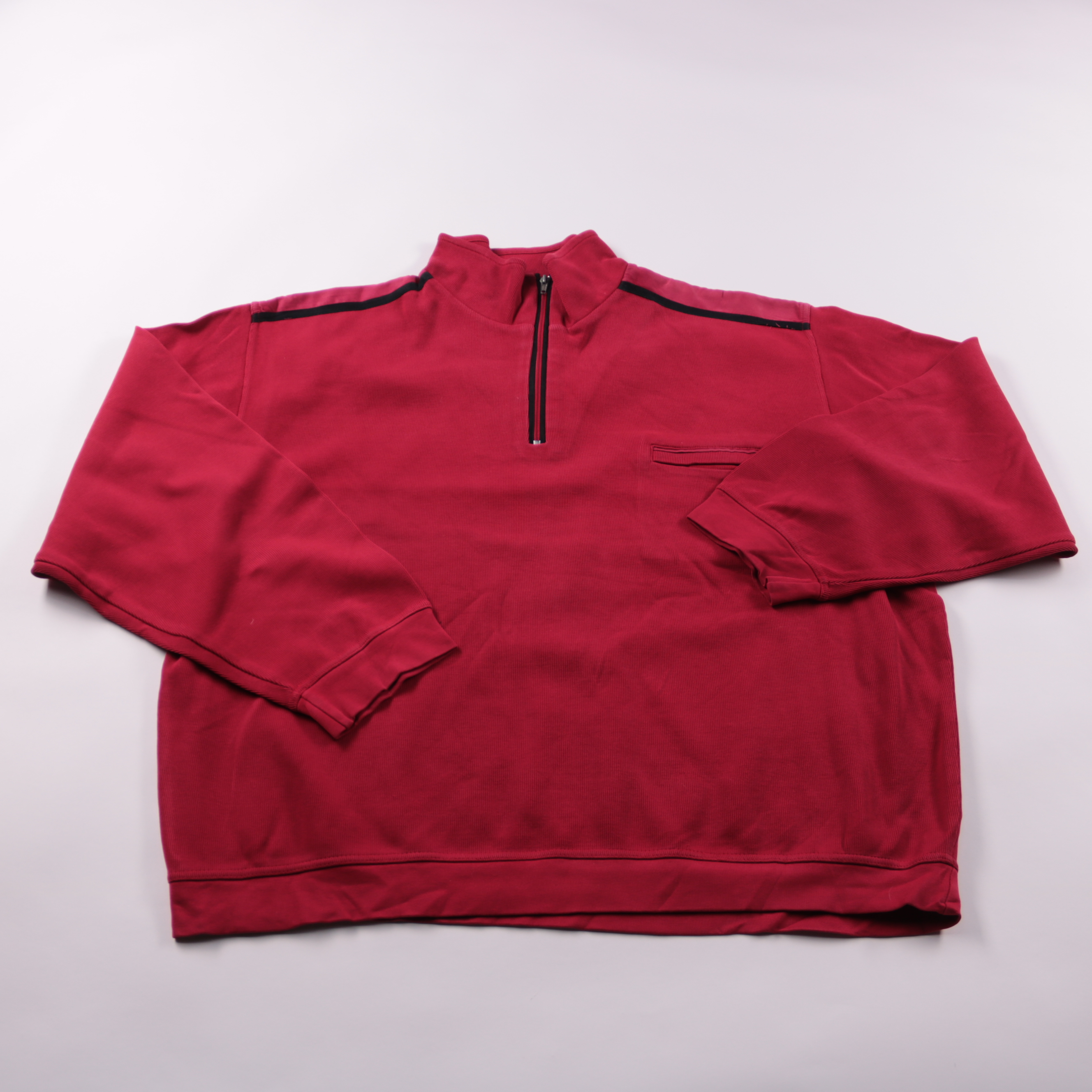 Мужской свитшот Bueckle бордового цвета с короткой молнией у воротника и контрастной отделкой по плечам. Подойдёт для повседневной носки в прохладную погоду и для поездок. Натуральный хлопок приятен к телу и хорошо дышит.