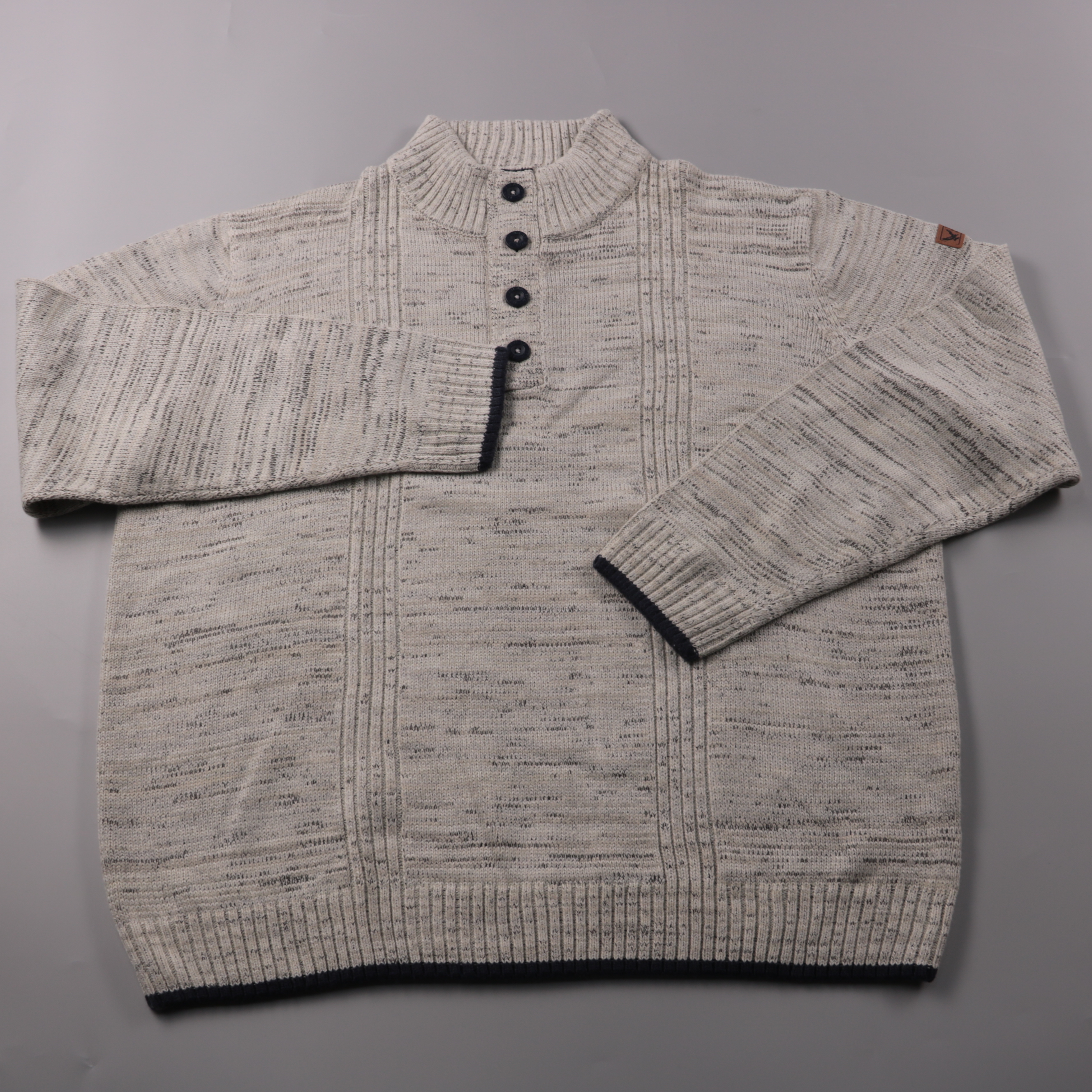 Мужской свитер Atlasformen светло-бежевого меланжа с высоким воротом и планкой на пуговицах. Удобен для прохладной погоды и хорошо смотрится с джинсами или брюками в повседневных образах. Плотная вязка и эластичные манжеты помогают сохранять тепло и де...