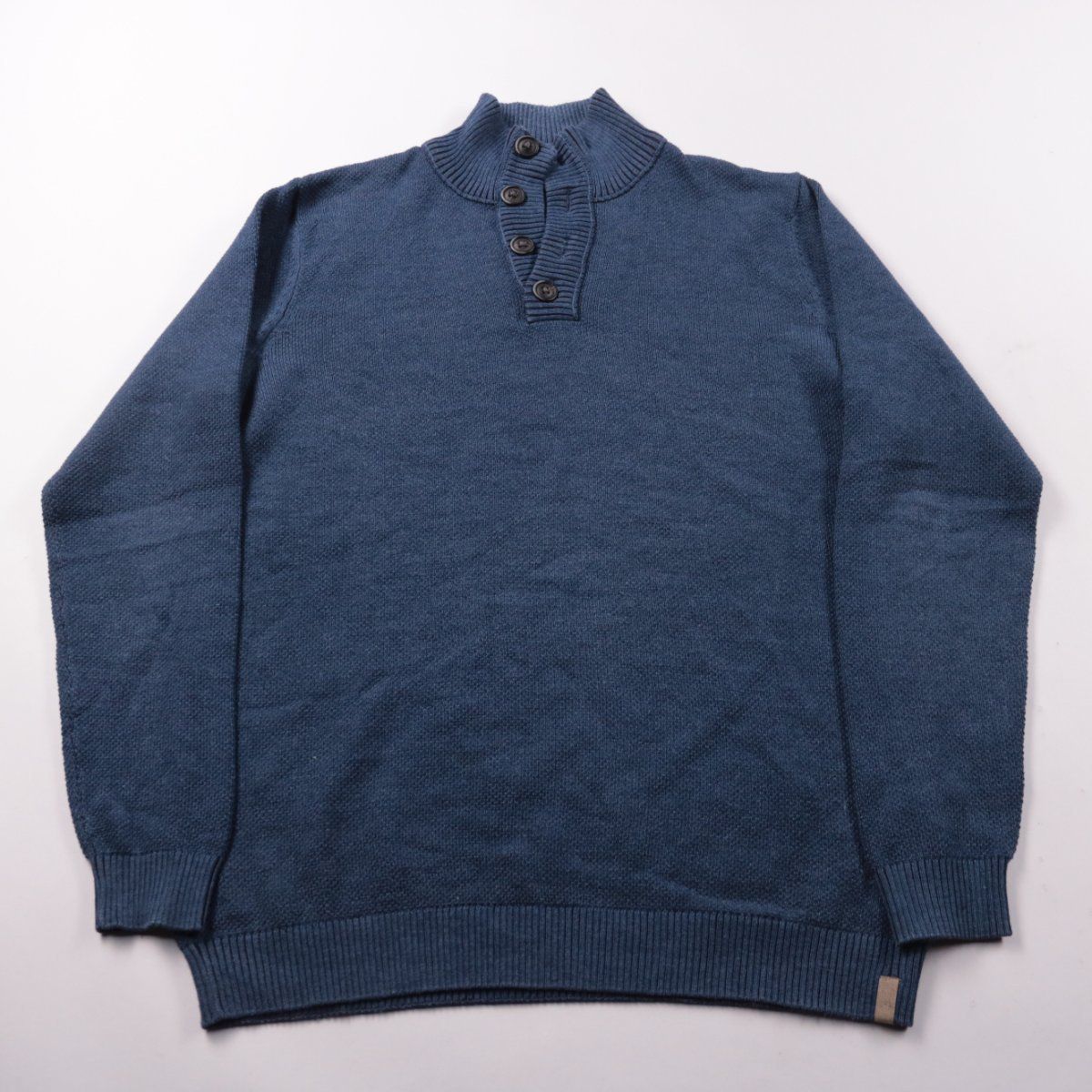 Мужской вязаный джемпер Tom Tailor тёмно-синего цвета с воротником-стойкой и планкой на пуговицах. Подойдёт для повседневной носки осенью и весной, хорошо сочетается с джинсами и брюками. Практичный плюс — удобно надевать слоями под куртку или пальто.