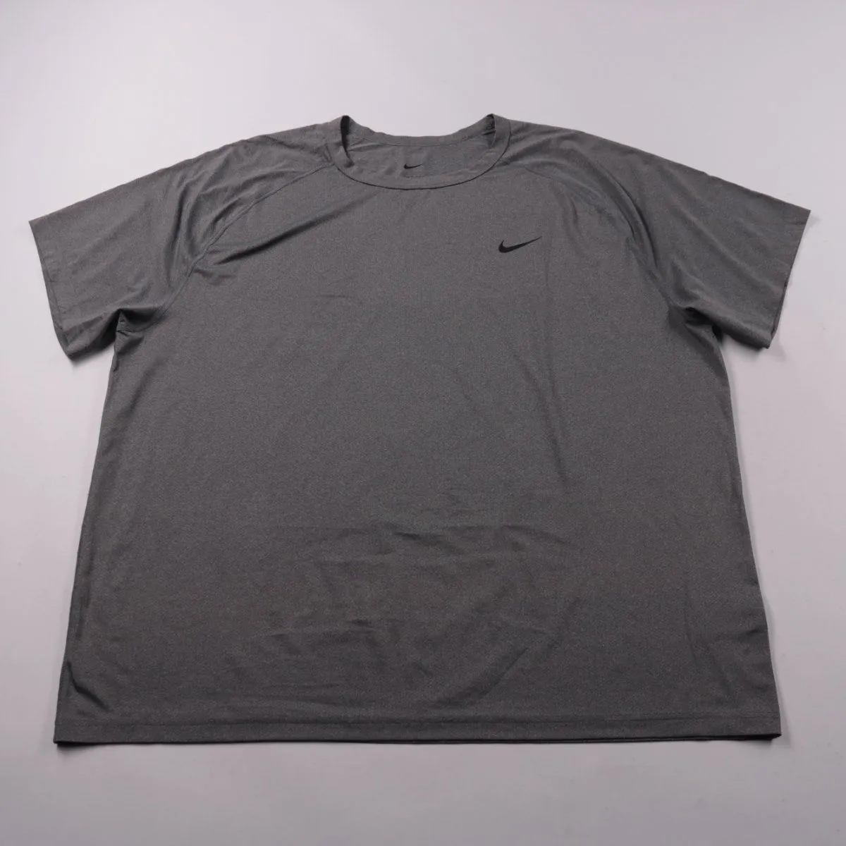 Мужская спортивная футболка Nike Dri-FIT серого меланжа с коротким рукавом и небольшим логотипом на груди. Подойдёт для тренировок, бега и активного отдыха благодаря лёгкой тянущейся ткани. Материал быстро сохнет и хорошо отводит влагу.
