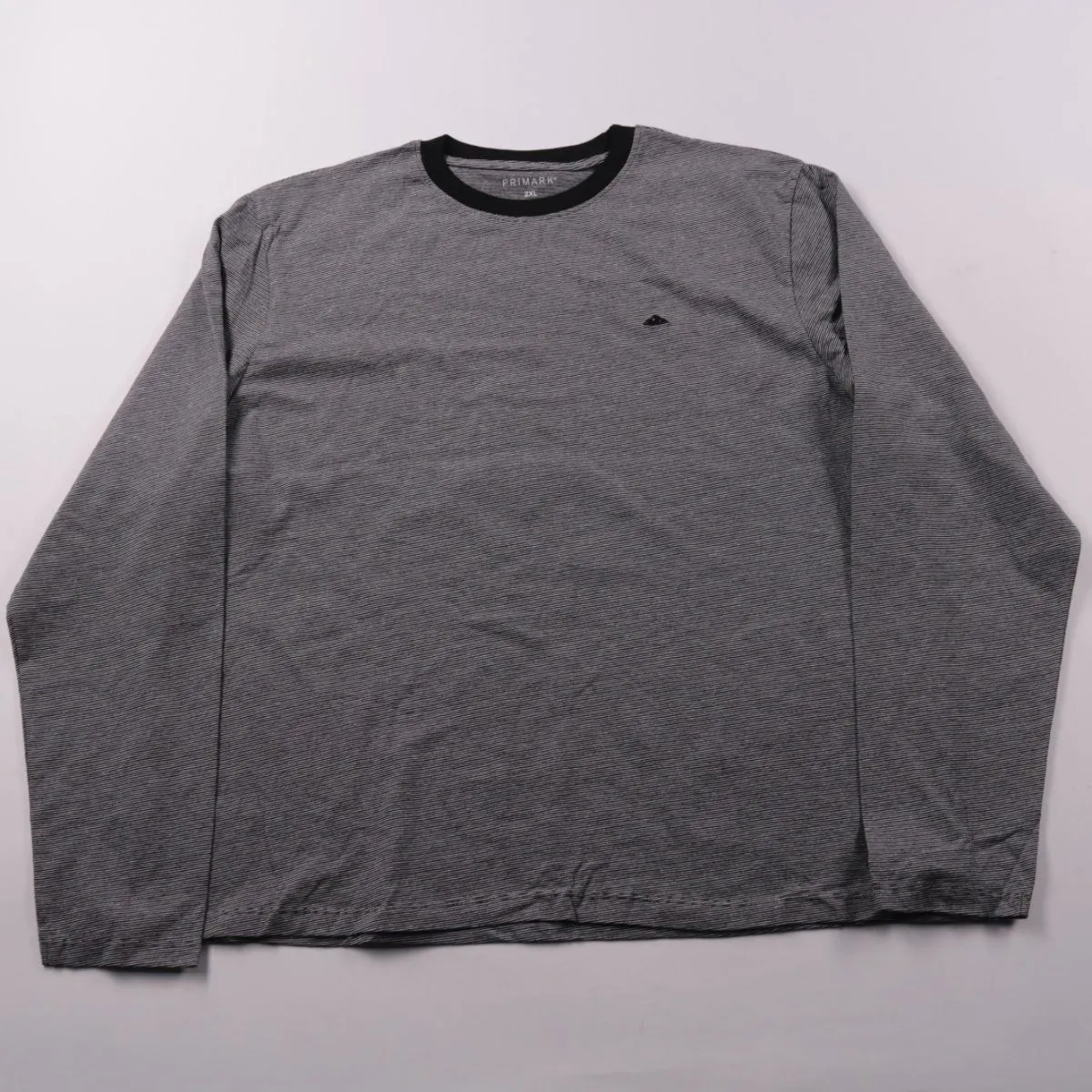 Мужской лонгслив Primark в сером меланже с тонкой полоской и контрастной чёрной окантовкой горловины. Подойдёт для повседневной носки и как базовый слой в прохладную погоду. Натуральный хлопок комфортный и хорошо дышит.
