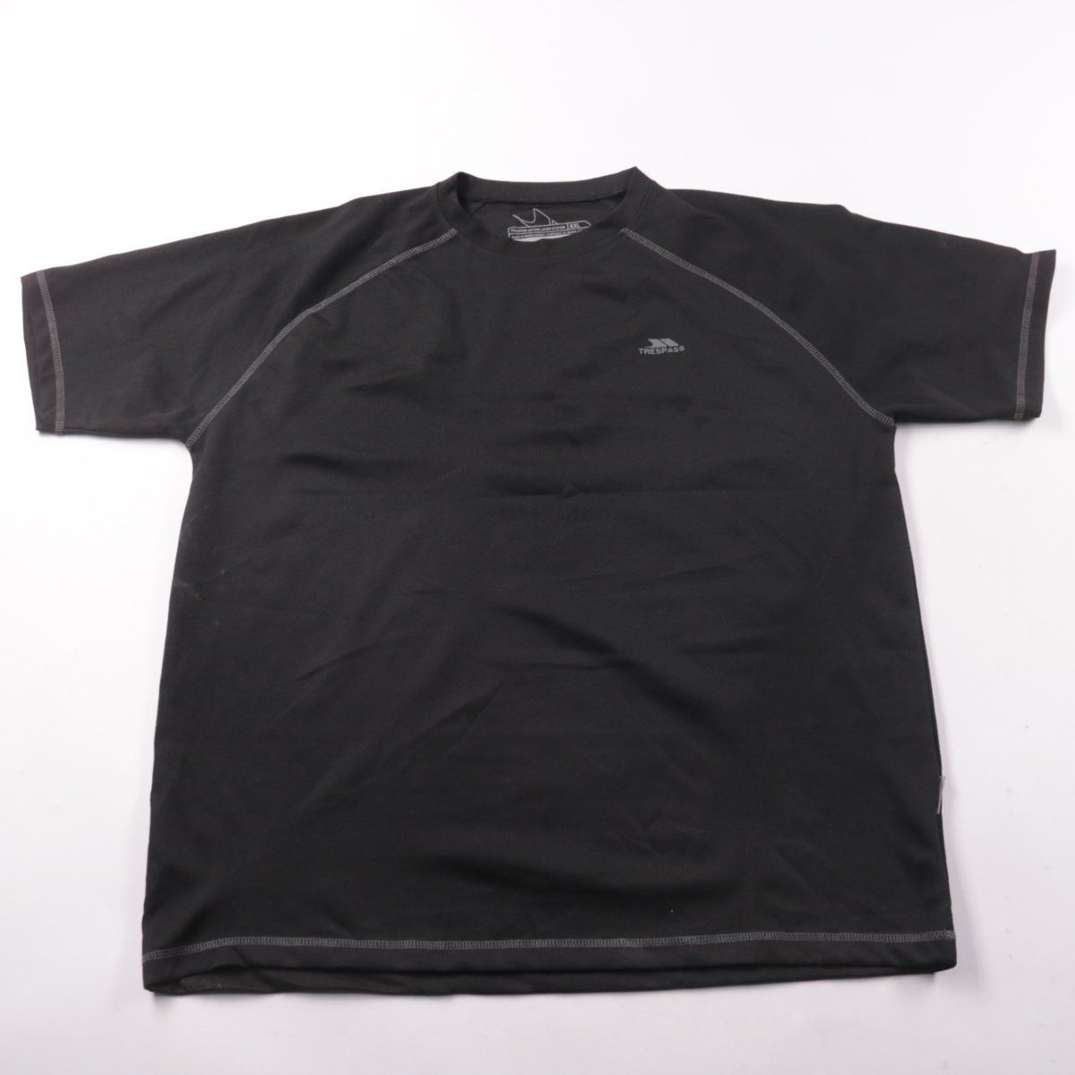 Мужская спортивная футболка Trespass из быстросохнущего материала, чёрного цвета, с реглан-рукавом и плоскими швами. Подойдёт для тренировок, активного отдыха и как базовый слой. Лёгкая ткань хорошо отводит влагу и быстро сохнет.