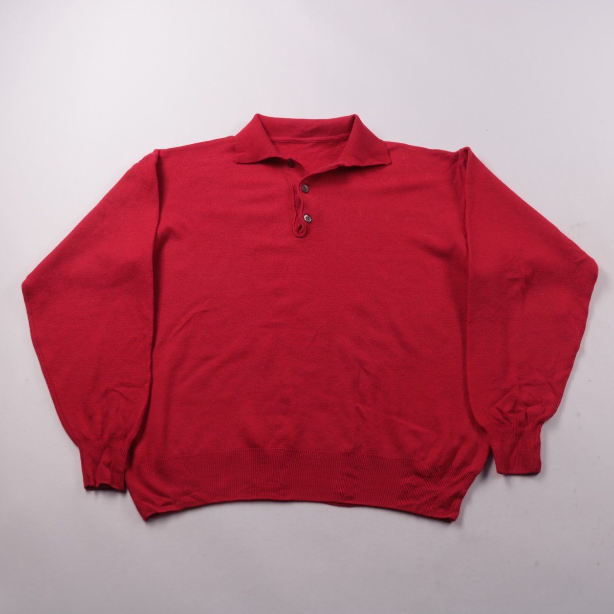 Мужской красный свитер с воротником поло и застёжкой на пуговицы. Подойдёт для повседневной носки в прохладную погоду и офисного casual-образа. Практичный вариант: натуральная шерсть хорошо сохраняет тепло.