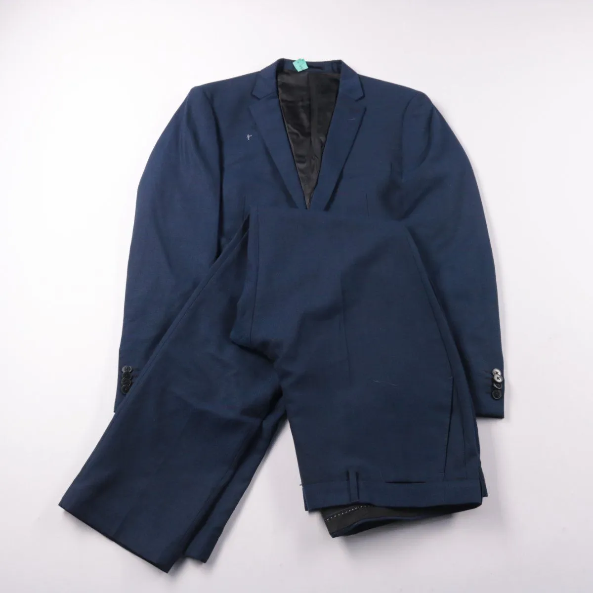 Мужской костюм WE тёмно-синего цвета: пиджак и брюки из шерстяной ткани с добавлением полиэстера. Подойдёт для офиса, собеседований и торжественных мероприятий в классическом стиле. Практичный плюс — износостойкая ткань и комфортная подкладка.