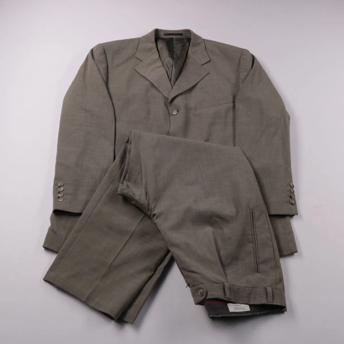 Мужской костюм Canda (C&A) в сером цвете: пиджак на пуговицах и брюки классического кроя. Подойдёт для офиса, собеседований и торжественных случаев, легко сочетается с рубашками и однотонными галстуками. Практичный вариант: немаркий цвет и универсальный стиль на каждый день.