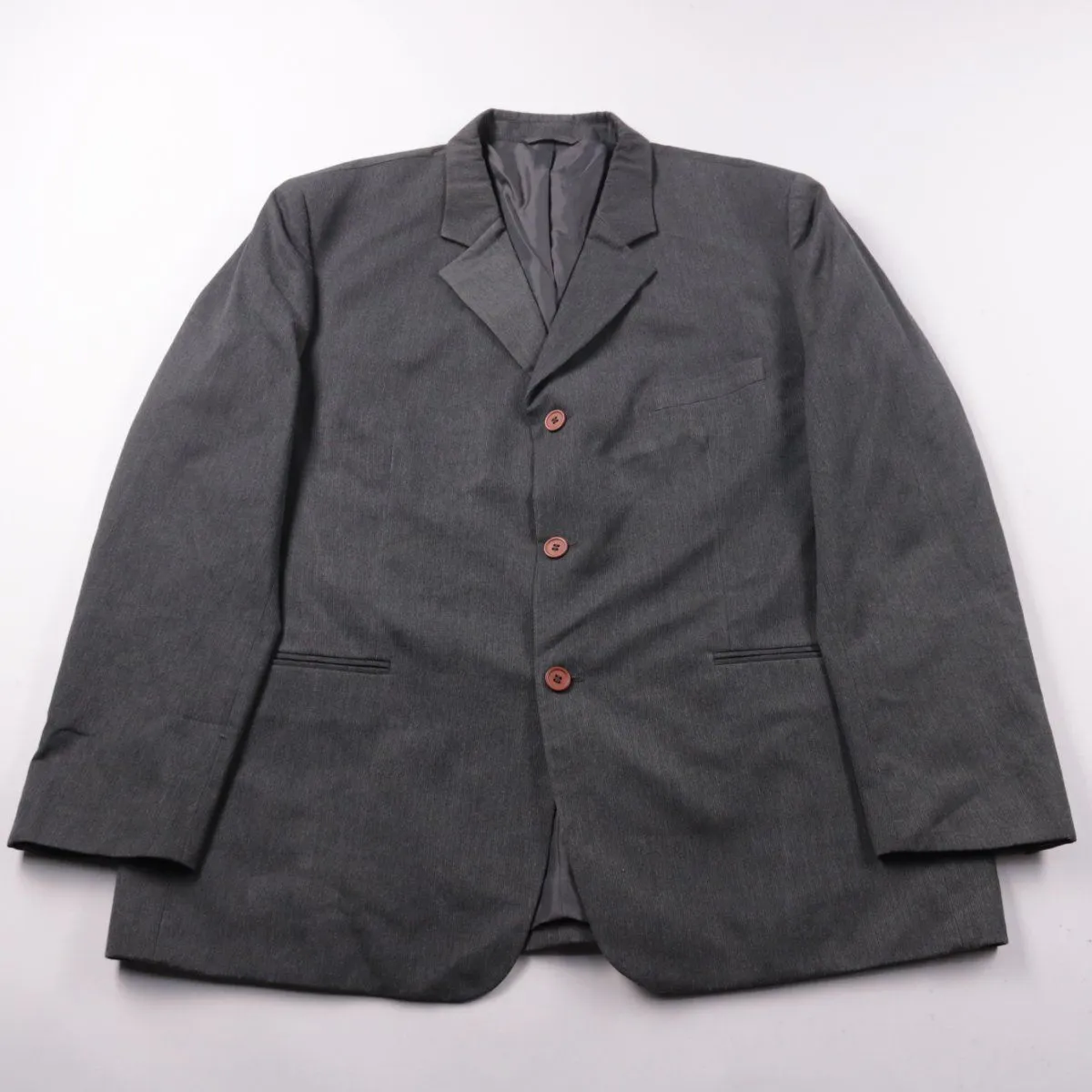 Мужской пиджак Jules тёмно-серого цвета, классического кроя на пуговицах. Подойдёт для офиса, собеседований и торжественных мероприятий. Ткань со смесью вискозы и полиэстера меньше мнётся и проста в уходе.