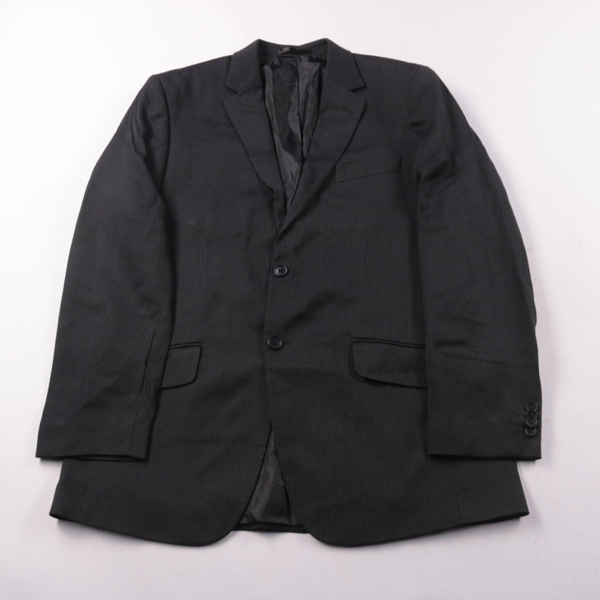 Мужской пиджак F&F чёрного цвета в тонкую полоску, однобортный на двух пуговицах. Подойдёт для офиса, деловых встреч и мероприятий в классическом стиле. Полностью на подкладке, поэтому лучше держит форму и удобнее надевать поверх рубашки.