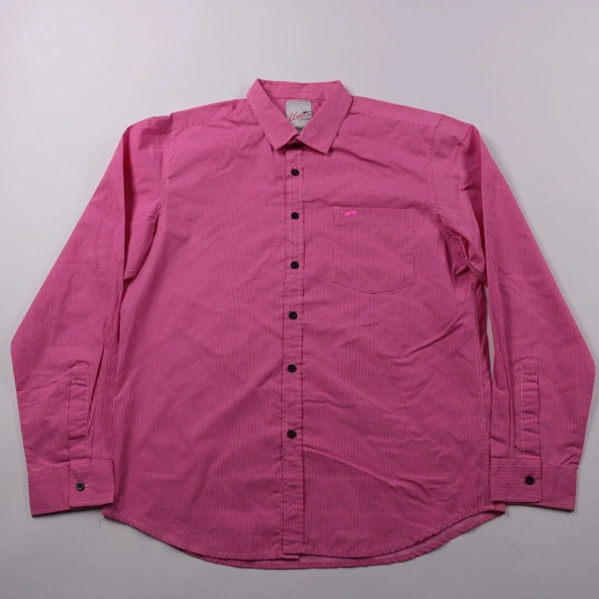 Мужская рубашка Urban Spirit в розовую мелкую полоску, с длинным рукавом и нагрудным карманом. Подойдёт для офиса и повседневных образов с джинсами или брюками. Смесовая ткань (хлопок с полиэстером) меньше мнётся и проще в уходе.