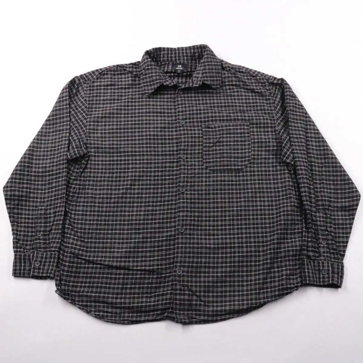 Мужская рубашка H&M Loose Fit в чёрную клетку, с длинным рукавом и нагрудным карманом. Подойдёт для повседневных образов в прохладную погоду, хорошо смотрится с джинсами и чиносами. Смесь вискозы и хлопка делает ткань мягкой и более комфортной в носке.