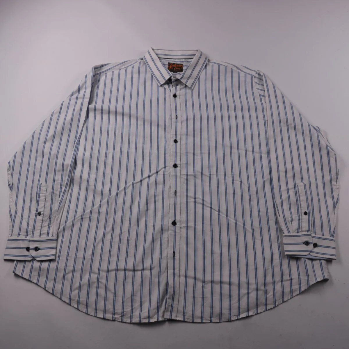 Мужская рубашка Johnny Bigg в бело-синюю полоску, на пуговицах, с длинным рукавом. Подойдёт для офиса и повседневных образов в прохладную погоду или под пиджак. Хлопковая ткань хорошо дышит и комфортна в носке.