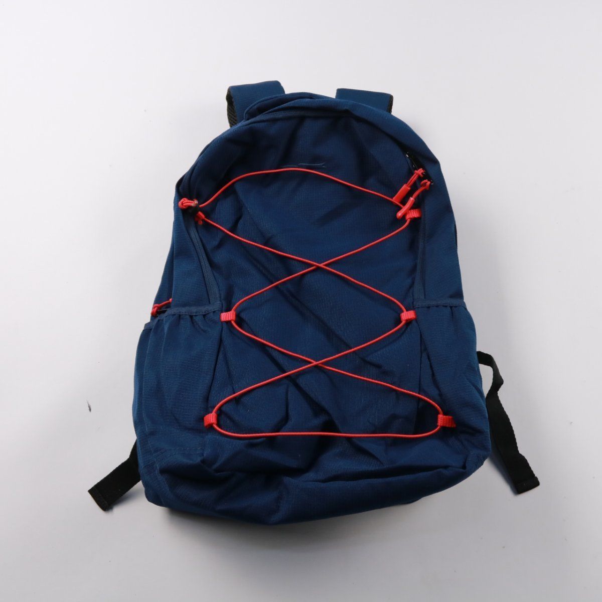 Унисекс рюкзак в темно-синем цвете с внешней эластичной шнуровкой для крепления куртки или мелочей. Подойдет для города, учебы и коротких поездок, есть основное отделение на молнии и внутренний карман. Мягкие лямки делают переноску комфортнее.