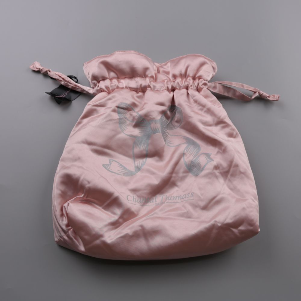 Сумка-мешок Chantal Thomass из гладкого сатинового материала в нежно-розовом цвете с кулиской на завязках. Подойдёт для хранения аксессуаров или как лёгкая сумка для поездок и спортзала. Мягкая ткань компактно складывается и почти не занимает места.