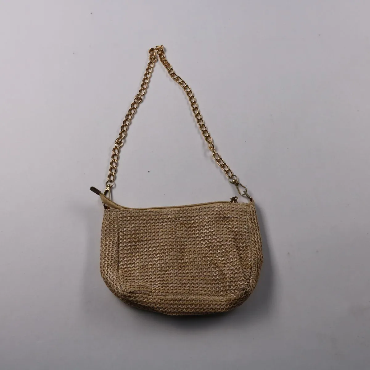 Небольшая плетёная сумка с цепочкой и застёжкой на молнию — удобный вариант для прогулок и летних выходов. Подойдёт к повседневным образам и отпуску, когда нужны только телефон, ключи и карта. Лёгкая и компактная, не занимает много места.