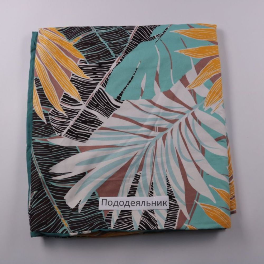 Пододеяльник с ярким тропическим принтом, без указания бренда. Подойдёт для спальни или гостевой комнаты, чтобы добавить акцент в интерьер. Практичен тем, что легко освежает вид постели и защищает одеяло от загрязнений.