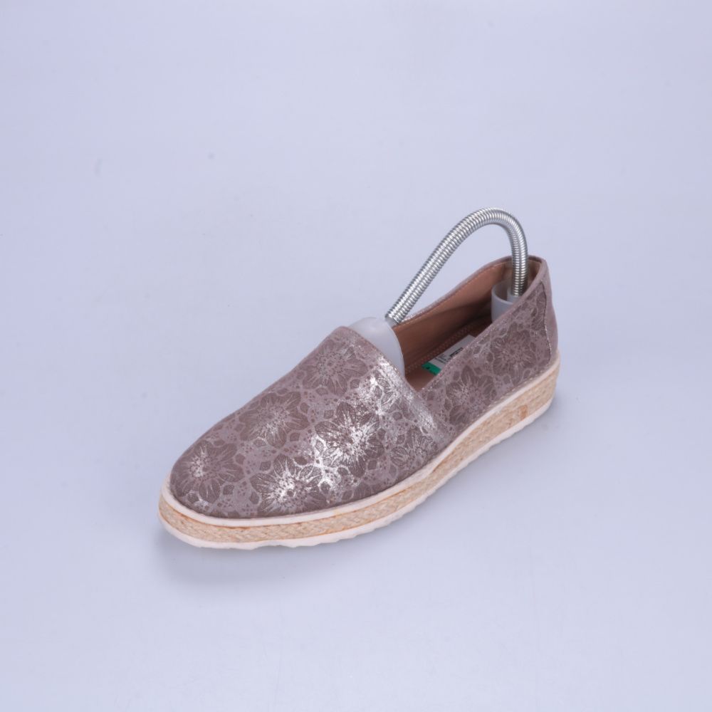 Слипоны Trask с блестящим цветочным тиснением и джутовой отделкой по ранту. Подойдут для лета и тёплого межсезонья, хорошо смотрятся с джинсами, платьями и шортами. Лёгкая подошва с рифлением даёт устойчивость при ходьбе.