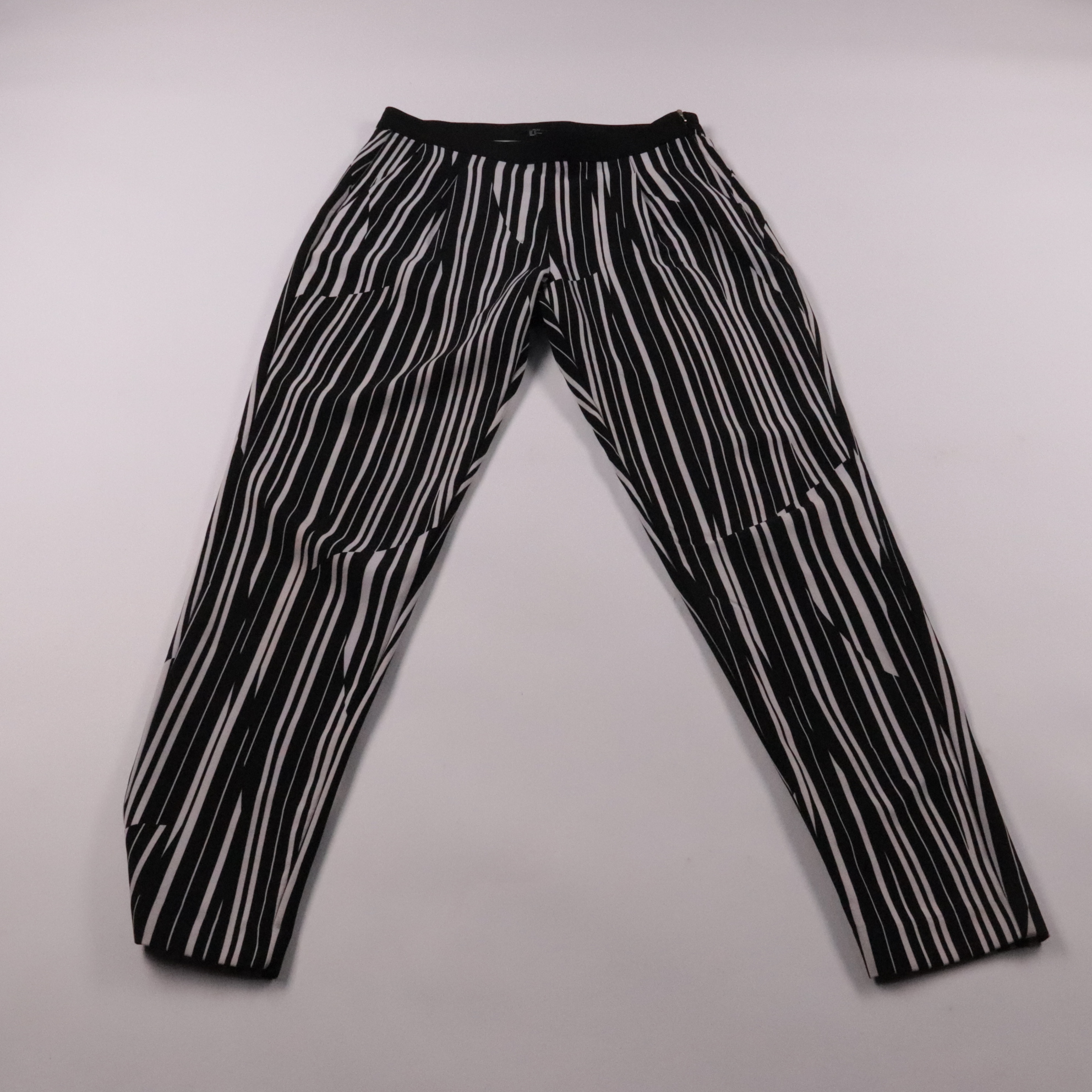Женские брюки H&M в чёрно-белую вертикальную полоску, зауженные к низу. Подойдут для офиса и повседневных образов, хорошо смотрятся с однотонными топами и жакетами. Ткань с эластаном немного тянется и комфортно садится по фигуре.