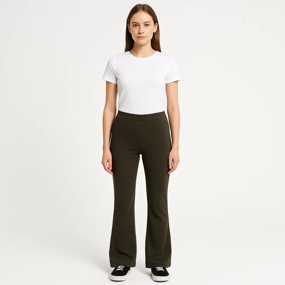 Женские брюки Vero Moda в тёмно-зелёном (хаки) цвете, лаконичная модель с эластичным поясом и слегка расклешёнными штанинами. Подойдут для повседневных образов и офиса с базовыми топами, рубашками и жакетами. Практичны тем, что не мнутся и легко сочета...