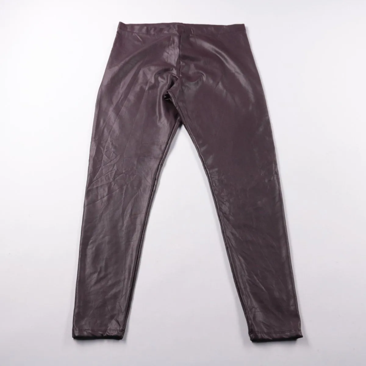 Женские брюки H&M из материала с кожаным эффектом, зауженного кроя. Подойдут для повседневных образов в прохладную погоду и на выход. Эластичная ткань хорошо садится по фигуре и не стесняет движения.