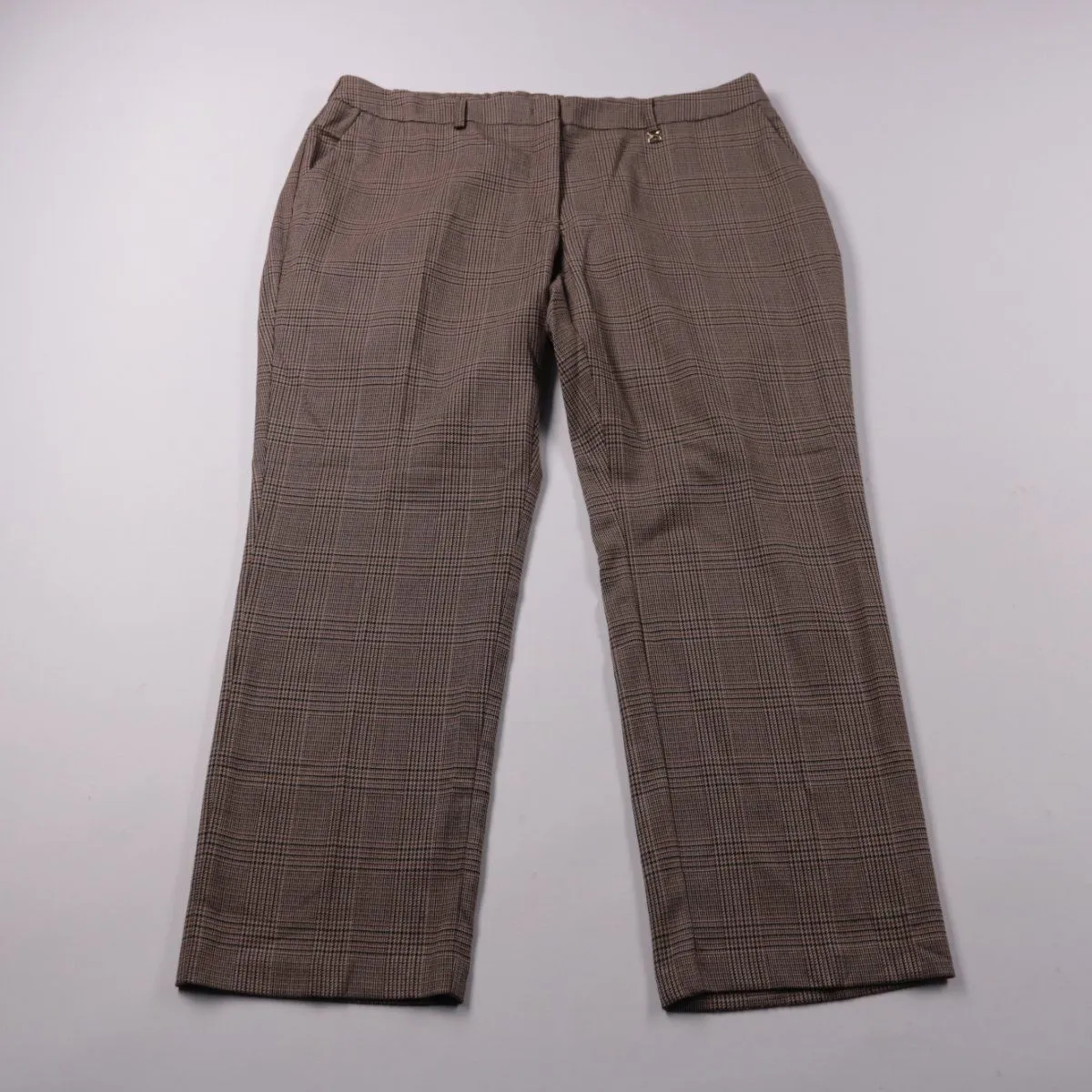 Женские брюки Berlin в коричневую клетку, прямого кроя с классической посадкой и карманами. Подойдут для офиса и повседневных образов в прохладную погоду, легко сочетаются с жакетом или базовым трикотажем. Ткань со смесью вискозы и эластана комфортно сидит и меньше мнётся.