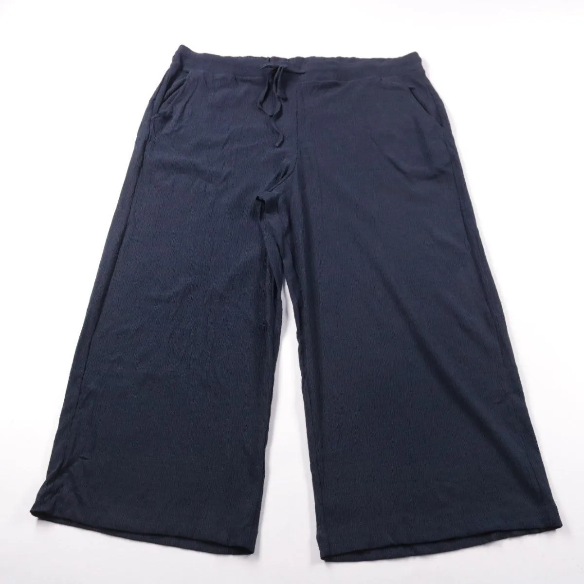 Женские брюки C&A свободного прямого кроя на кулиске, тёмно-синего цвета. Подойдут для повседневных летних образов и отдыха благодаря лёгкой, немного тянущейся ткани. Практичный плюс — удобная посадка с регулируемой талией и карманы.