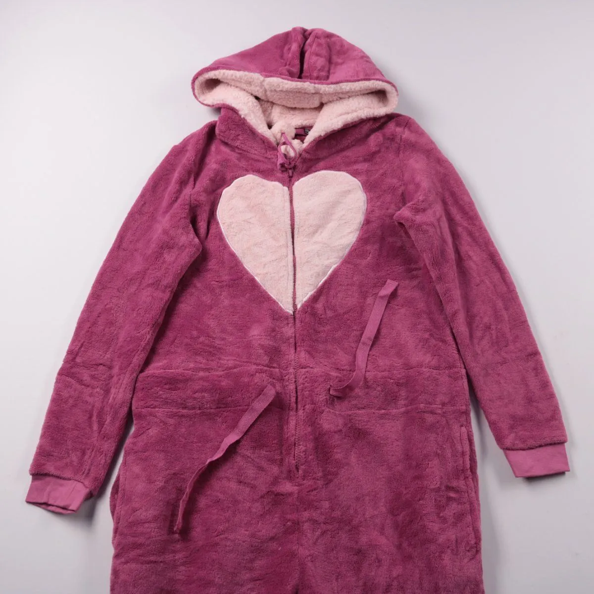 Домашняя пижама-комбинезон Esmara из мягкого плюша, на молнии, с капюшоном и контрастным сердцем спереди. Подойдёт для сна и отдыха дома в прохладные вечера. Практичный плюс — тёплая плюшевая фактура и удобная застёжка на молнии.