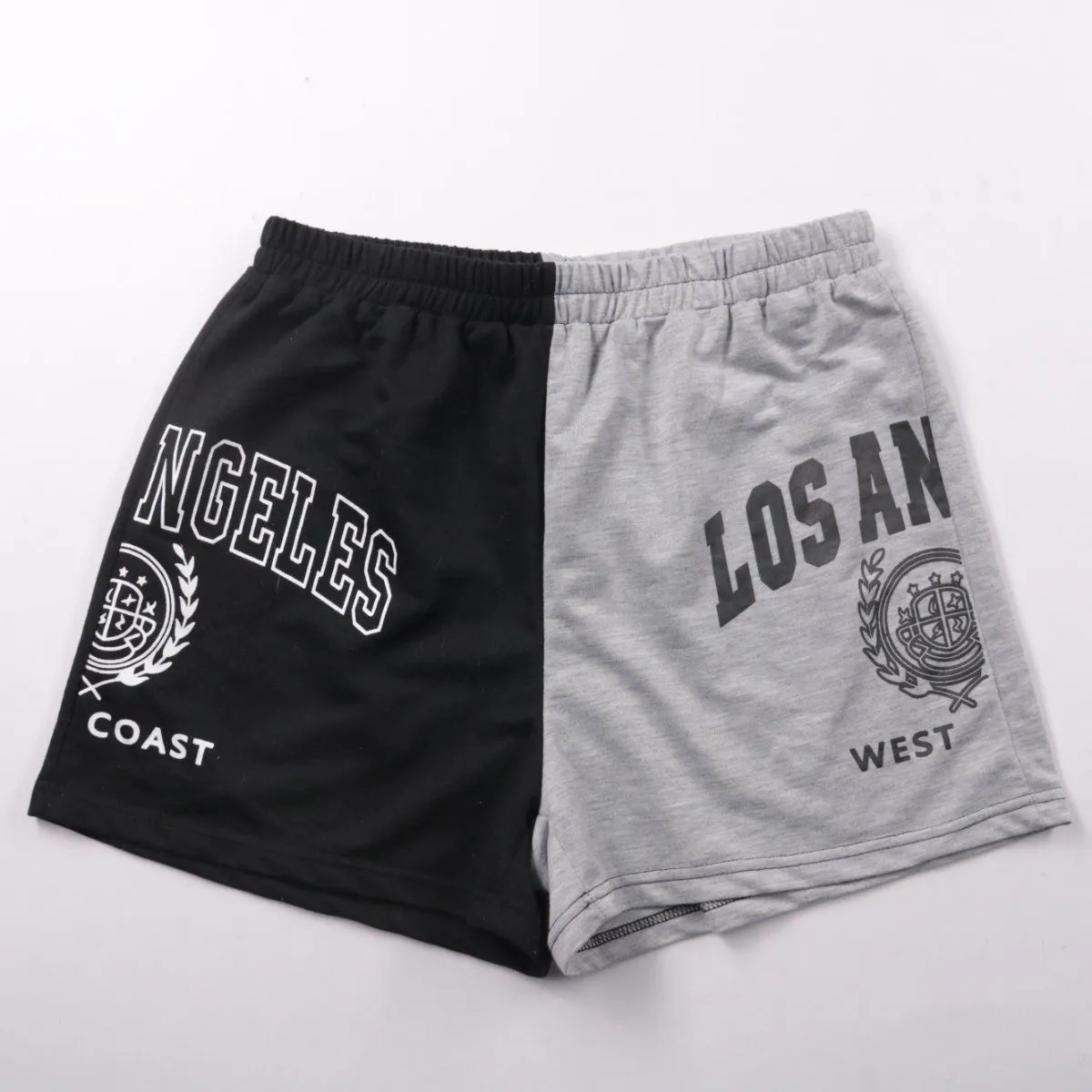 Мужские трикотажные шорты с принтом Los Angeles, двухцветные (чёрный/серый) и на резинке. Подойдут для дома, прогулок и лёгких тренировок в тёплую погоду. Практичны тем, что не сковывают движения и быстро надеваются.