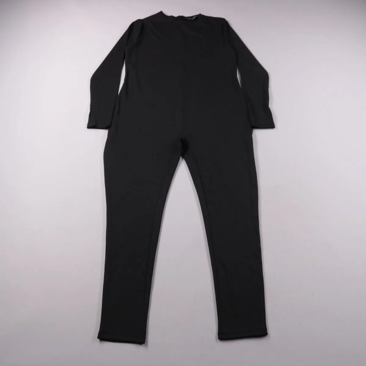 Чёрный женский комбинезон Primark облегающего кроя с длинным рукавом и застёжкой-молнией сзади. Подойдёт для образов на выход или на каждый день, когда нужен лаконичный силуэт. Эластичная ткань хорошо тянется и комфортно садится по фигуре.