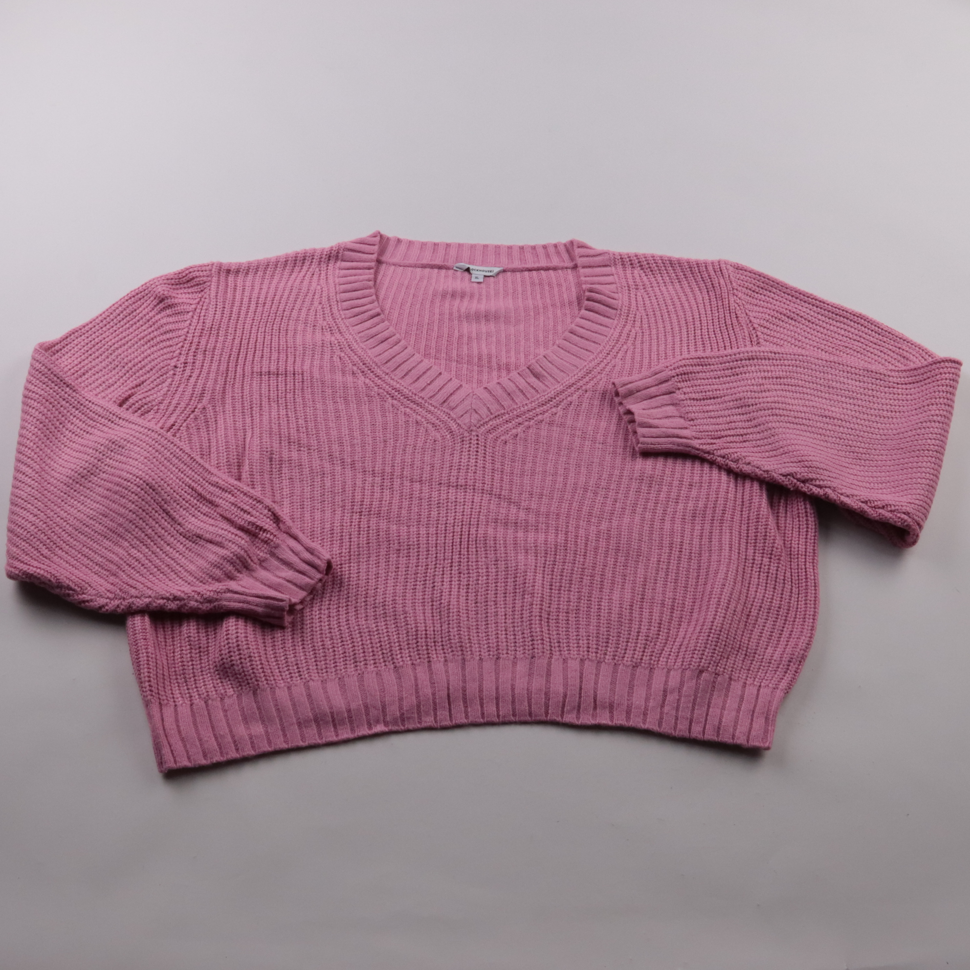 Вязаный джемпер Clockhouse розового цвета с V-образным вырезом и фактурной вязкой. Подойдёт для повседневных образов в прохладную погоду, хорошо сочетается с джинсами и юбками. Материал лёгкий в уходе и быстро сохнет.