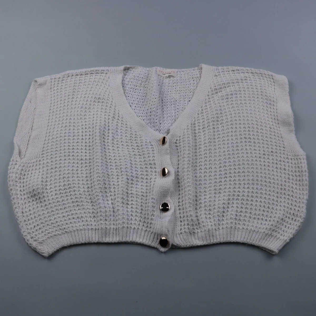 Укороченный вязаный кардиган Lola Liza светло-серого цвета с V-образным вырезом и крупными пуговицами. Подойдёт для многослойных образов в прохладные дни или летними вечерами. Смесь хлопка и акрила делает вещь мягкой и более простой в уходе.
