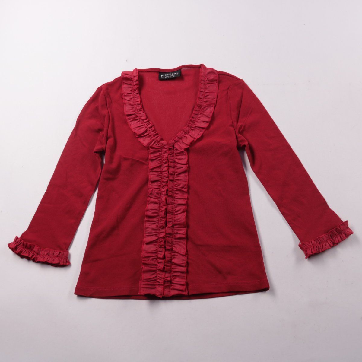 Женская кофта Principles Petite красного цвета с V-образным вырезом и декоративными оборками по планке и манжетам. Подойдёт для офиса и повседневных образов в прохладную погоду, хорошо смотрится с брюками и юбками. Лёгкий трикотаж комфортно носить как самостоятельный верх или как слой под жакет.