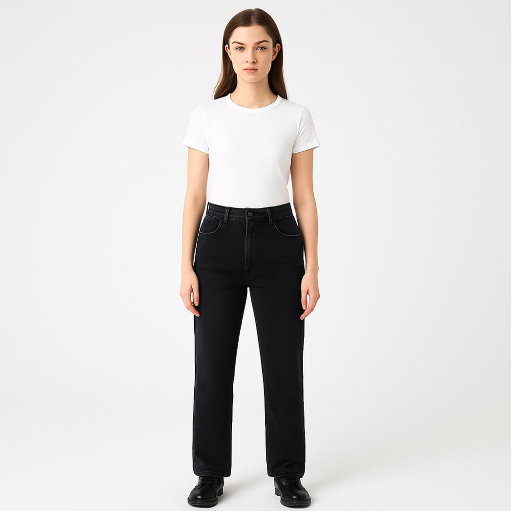Женские джинсы M&S прямого кроя в чёрном цвете. Подойдут для повседневных образов и офиса с рубашкой или базовой футболкой. Плотный хлопковый деним с добавлением эластана комфортно садится по фигуре и не сковывает движения.