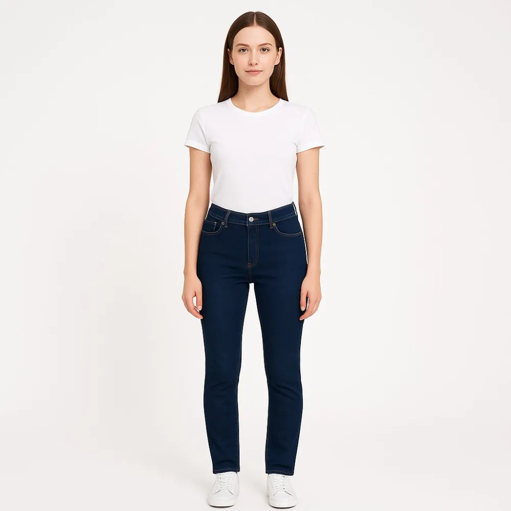 Женские джинсы Essentials by Tchibo из тёмно-синего денима, базовая модель для повседневных образов. Подойдут для офиса в casual-стиле и на каждый день, хорошо сочетаются с футболками и рубашками. Практичный плюс — эластичная ткань лучше садится по фиг...