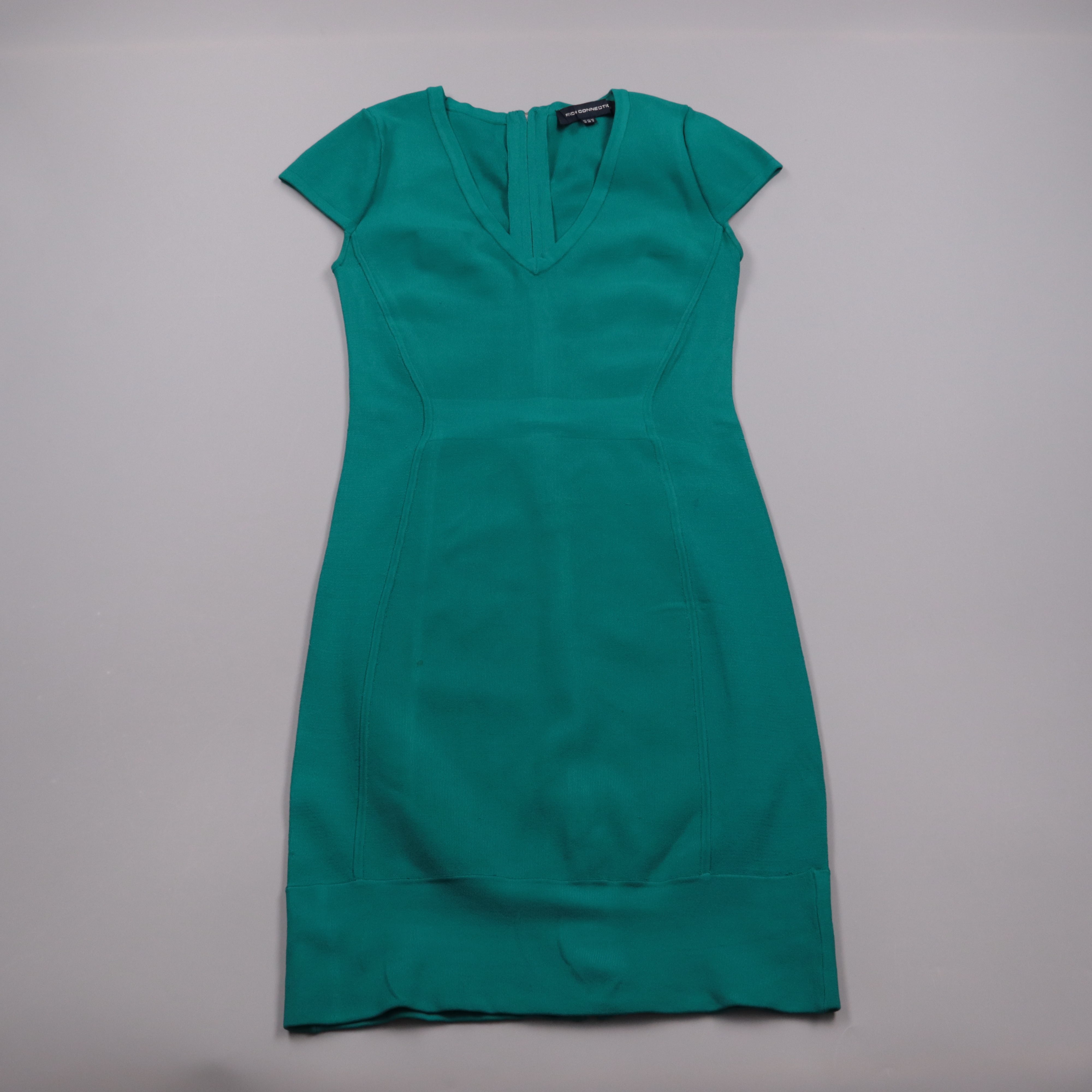 Повседневное платье French Connection бирюзового цвета, приталенного кроя с V-образным вырезом и коротким рукавом. Подойдёт для офиса и городских выходов, хорошо смотрится с жакетом или кардиганом. Тянущийся материал комфортно садится по фигуре, а молн...