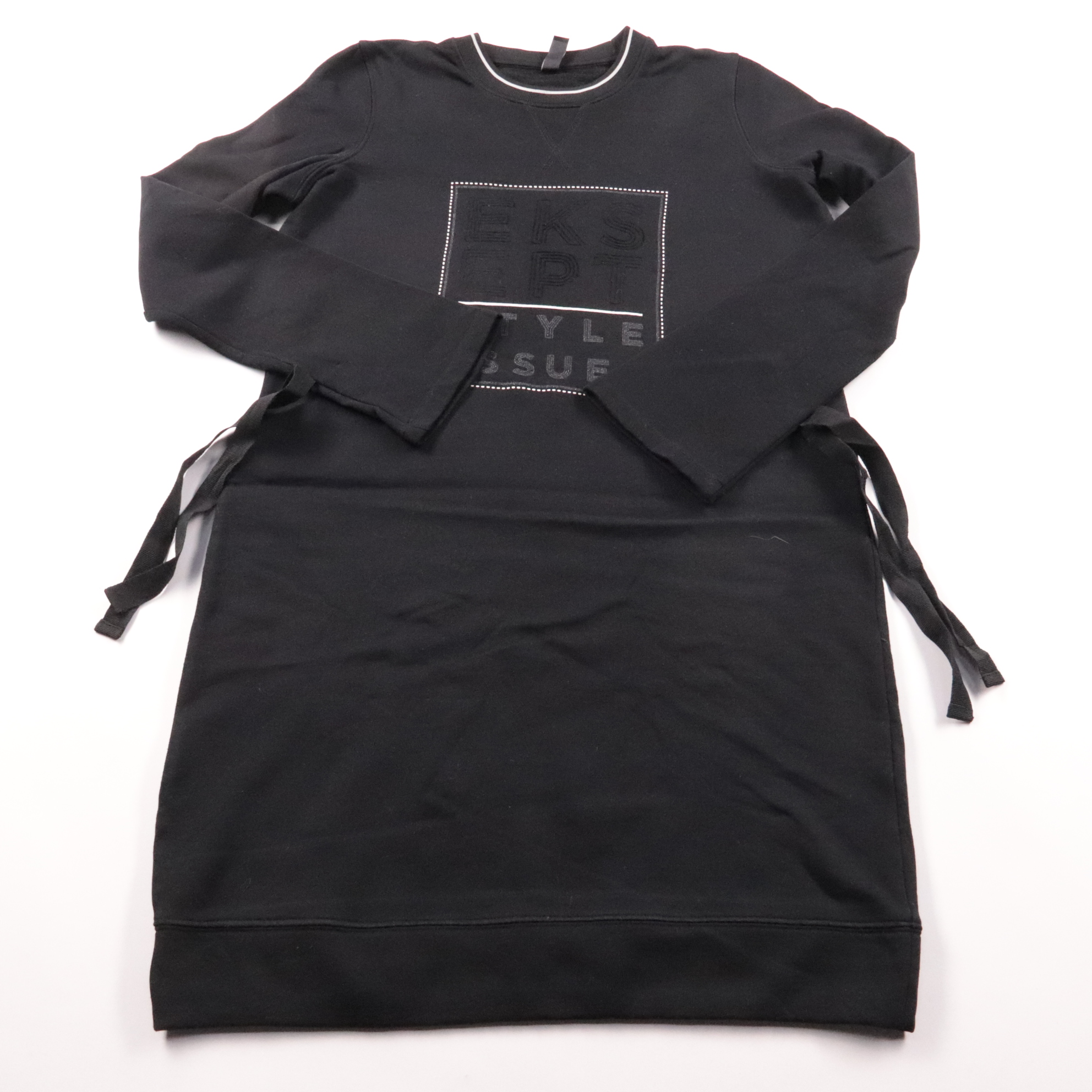 Платье-туника Eksept из плотного трикотажа с длинным рукавом и мягкой изнанкой. Свободный крой и шнуровки по бокам делают модель удобной для повседневных образов в прохладную погоду. Практичный чёрный цвет легко сочетается с кедами, ботинками и верхней...
