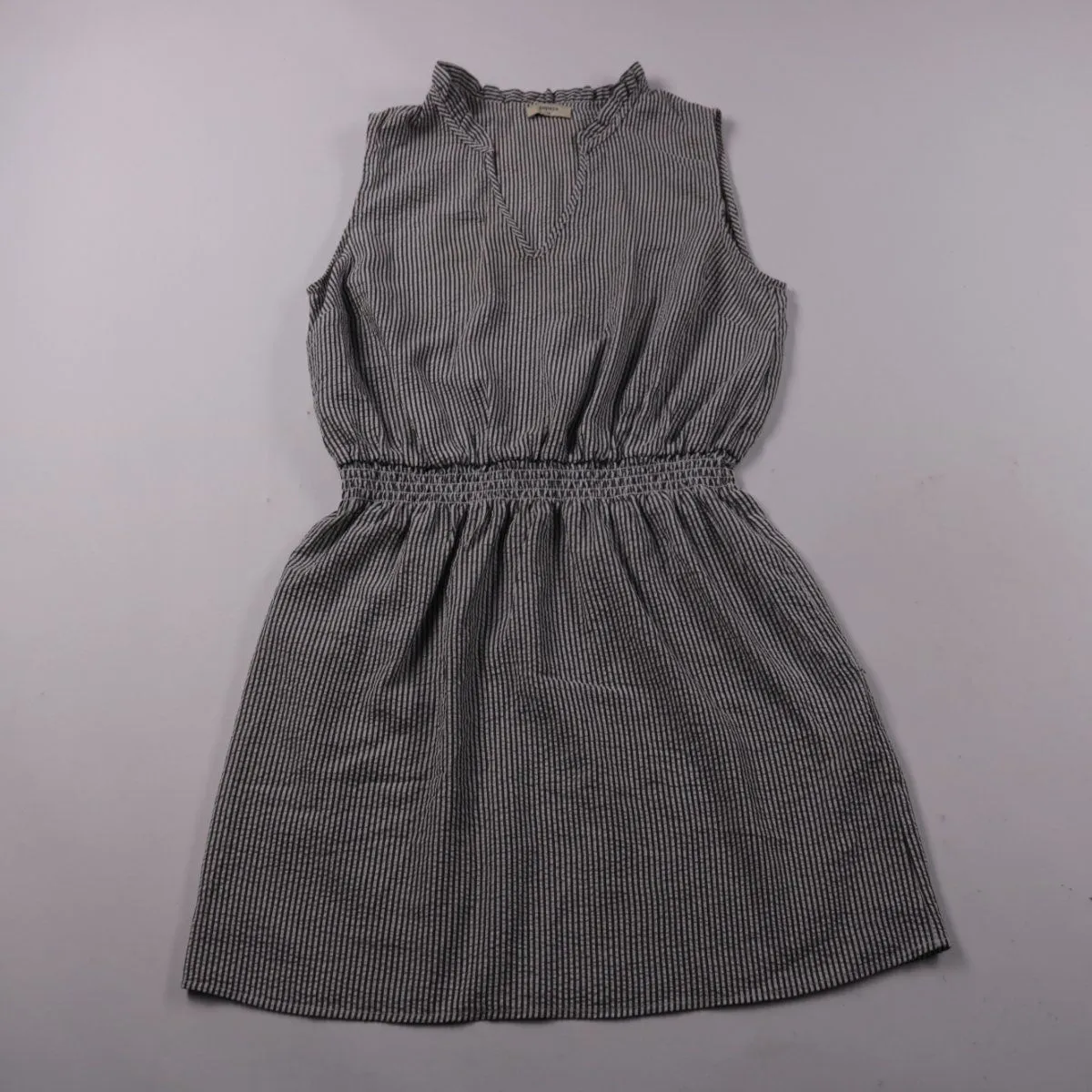 Повседневное платье Papaya в чёрно-белую полоску, без рукавов, с V‑вырезом и эластичной талией. Подойдёт для тёплой погоды, прогулок и офиса с лёгким жакетом. Полиэстеровая ткань быстро сохнет и почти не мнётся, удобно в уходе.